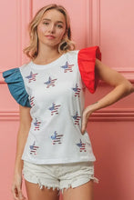 Топ с американски флаг с пайети звезди и ръкави с къдрици | СЛОНОВА КОСТ / M 100100863772735