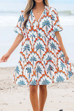 Рокля с къс ръкав и свободен силует с принт на палмово дърво в контрастни цветове | Floral / S 100100465037582