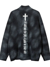 Мъжки плетен кардиган с цип и кръстосан тай-дай дизайн | Черно / S 100400664252986