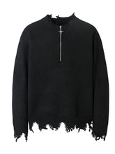 Мъжки пуловер с полуцип и износен подгъв | Черно / M 100400149893126
