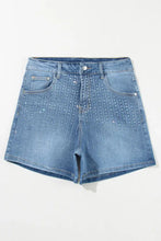 Дънкови къси панталони с висока талия и камъни Rhinestone | Среден / 12 100100270274874