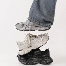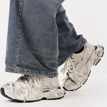 Разстроени бели дебели маратонки за жени с черни подметки | Бежово / 35(US4) 100600515351121