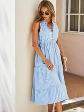 Синя и бяла на райета елегантна рокля без ръкави с многослойна дължина до середната прасеца | Небесносиньо / S 100100679771340