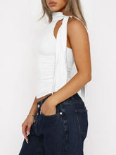Топ с тънки презрамки в едноцветен дизайн с връзки | Бял / S 100100271700148