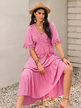 Spitzen-Detail V-Ausschnitt Halbarm Midi-Kleid | Fuchsia Pink / S 100100997701855