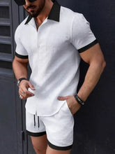 Herren-Textured-Polyester-Short-Set mit schwarzem Besatz | Weiß / S 100400049064519