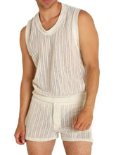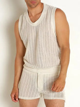 Weißes, vertikal gestreiftes Strick-Top und Shorts-Set für Männer | Elfenbein / S 100400637537736