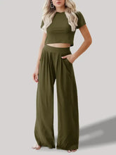 Rundhals-Top mit kurzen Ärmeln und Hosen-Set | Moos / S 100100786955278
