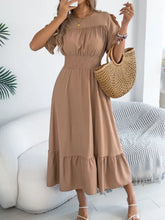 Gerafftes Kleid mit Rüschensaum und Rundhalsausschnitt in Midi-Länge | Black / S 100100073151382