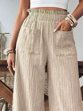 Pantalones de pierna ancha con volante | Caqui / S 100100514891579