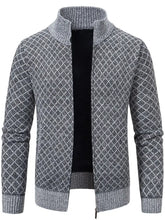 Cárdigan de punto con cremallera y patrón de diamantes para hombre talla grande | Gris / M 100400190689379