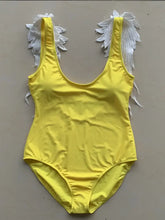 Ensemble de maillot de bain jaune à plumes assorti avec mesures du produit pour enfants | Jaune enfant / S 100100831745830