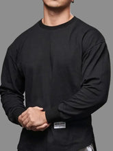 T-shirt à manches tombantes pour homme grande taille à col rond | Noir / M 100400243541637