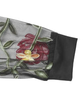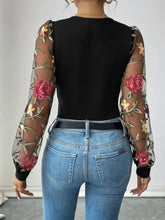 Body en mesh brodé floral noir avec manches pour femmes | Noir / S 100100518771821