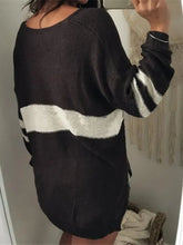 Pull rayé à col en V et manches longues | Noir / S 100100956650811