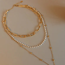 Collier à trois couches en acier titane perle synthétique | 100500247241231