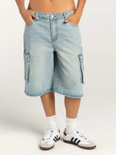 Shorts di jeans a vita media con tasche | Azzurro / S 100100194666881