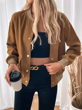 Perfee Baseball Collar Snap Down Long Sleeve Jacket | Caramel / S 100100684961050