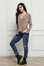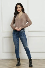 Body a manica lunga con jeans strappati per donne, opzioni di lunghezza delle maniche | Moka / S 100101604035716