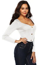 Witte lange mouwen knoopneusbodi voor vrouwen | Wit / S 100101986149319