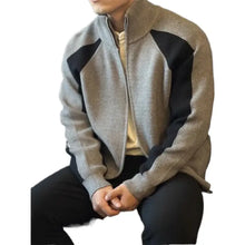 Heren Plus Size Kleurblok Geribbelde Breihals Trui met Zipper | Donkergrijs / M 100400008619609
