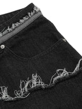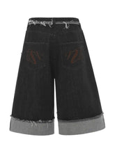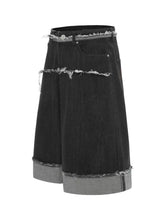 Heren denim bermuda shorts met onafgewerkte zoom en contrasterende boorden | Zwart / S 100400028084921