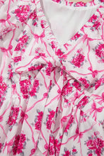 Witte zomerse jurk met roze bloemen en lintpatroon | Bloemig / M 100100494740282