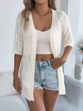 Openwork Open Front Halve Mouw Cardigan | Ivory / S 100100339371311