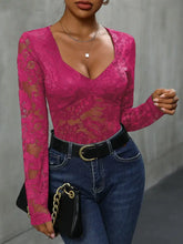 Zwarte kanten lange mouw semi-iroon cuerpo voor dames | Zwart / S 100100765412996