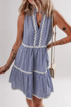 Gestreepte mouwloze mini-jurk met inkeping en ric rac-bies | Light Blue / S 100100714553746