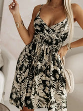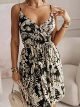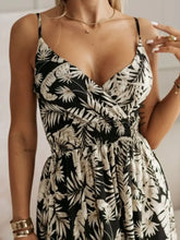 Zwart-witte bladerenprint tropische strandjurk | Zwarte Onderkant Bladeren / S 100100334736535