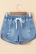Szorty dżinsowe z wysokim stanem i sznurkiem, postrzępione | Średni / 12 100100495178622