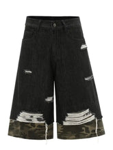 Męskie postarzane bermudy dżinsowe z kamuflażowym wykończeniem | Czarny / S 100400533497988