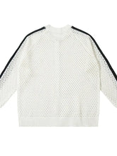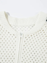 Męski kardigan z siateczkowego dzianego materiału na zamek z paskiem | Biały / M 100400365027643