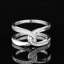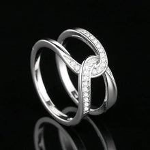 Skręcany pierścionek z inkrustowanym cyrkoniem, podwójna warstwa | Srebrny / 5 100500817531789