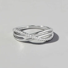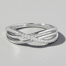 Anel de Prata Esterlina 925 com Zircão Incrustado em Padrão Cruzado | Prateado / 6 100500451221759