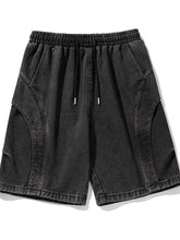 Calções de ganga com cordão para homem, tamanho grande, com detalhe de costura | Escuro / M 100400930989922