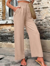 Calças de perna larga de cintura alta com cinto e bolsos | Caqui / S 100100612701277