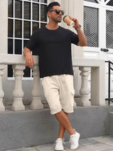 Herrshorts i full storlek med dragsko och cargofickor, plusstorlek | Ljusblå / S 100400570042860