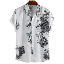 Herrars helstorlek tryckt kortärmad casual skjorta plusstorlek | Svart / S 100400657492807