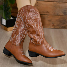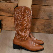 Kvinnors bruna cowboy-stövlar med vit broderi | Brun / 36(US5) 100600313131501