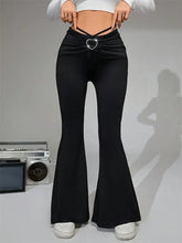 Byxor med utsvängd ben och knytband med hjärtspänne | Svart / S 100100807336018